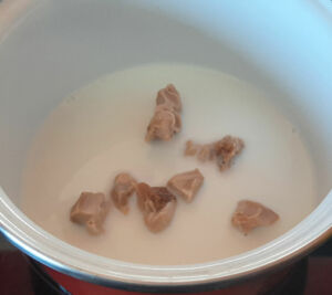 Faire tiédir une casserole avec 1/3 du lait et diluer la levure de boulanger