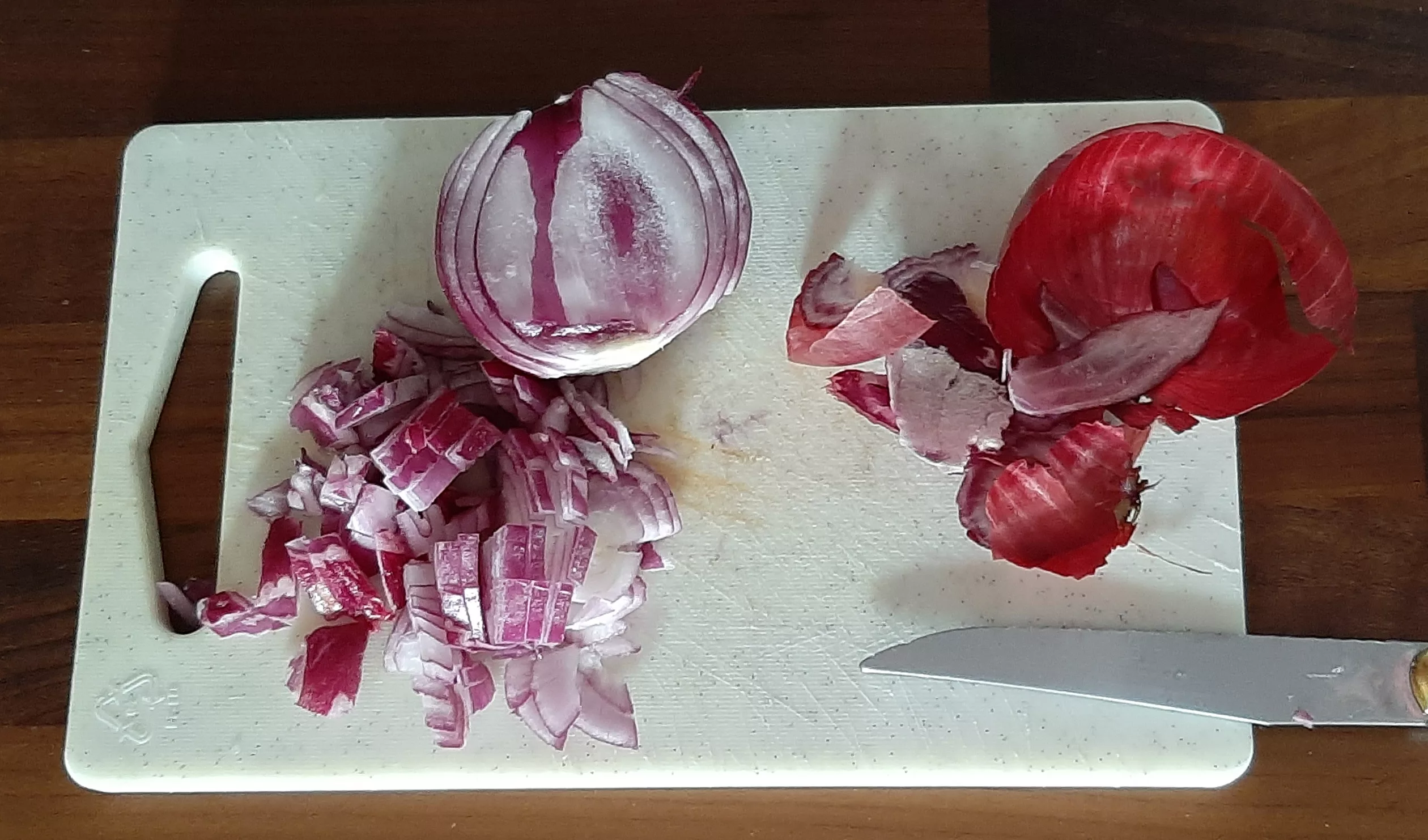 Eplucher et émincer l'oignon rouge.