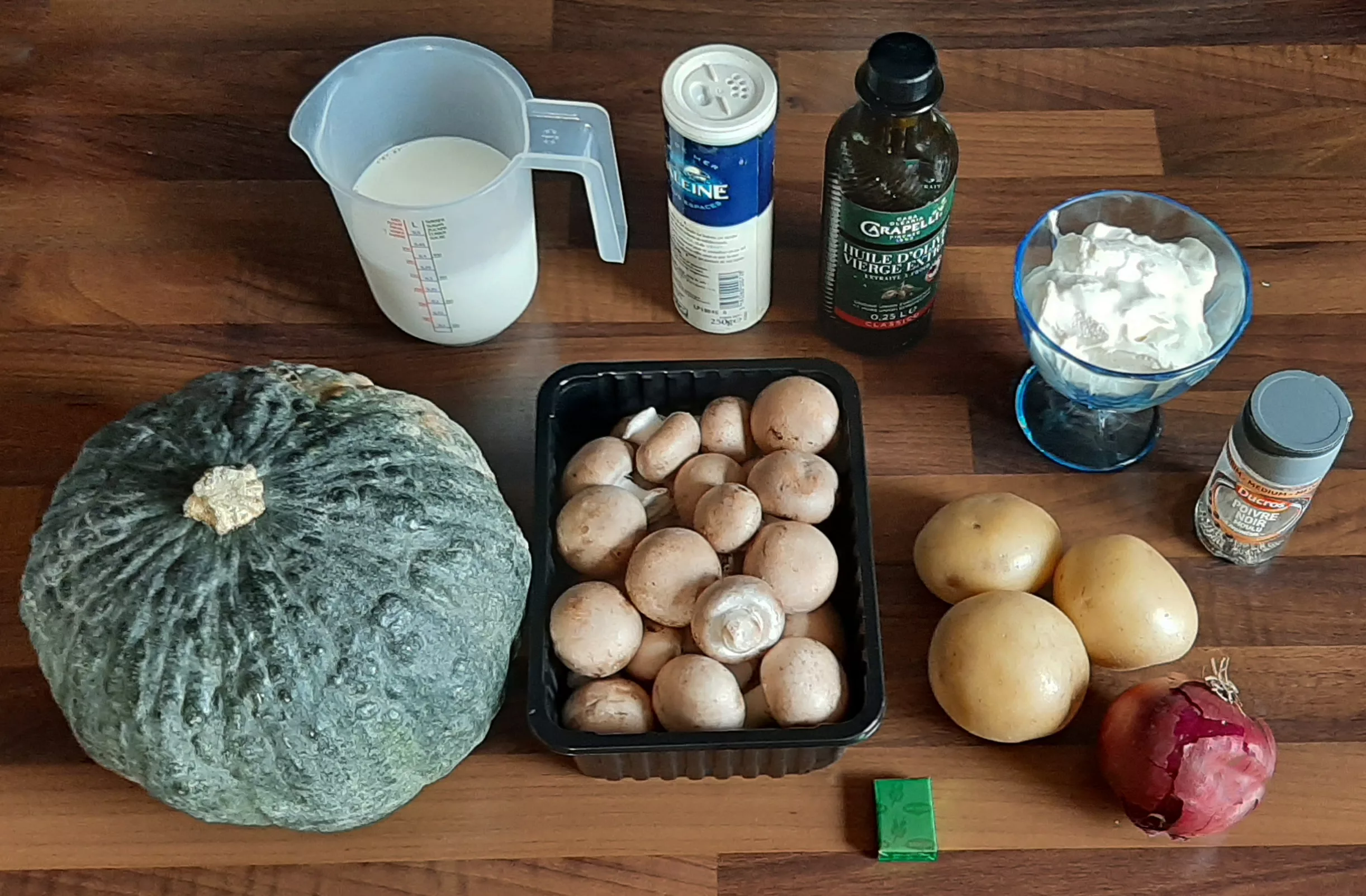 Votre velouté de courge potimarron vert aux champignons et pommes de terre est prêt.