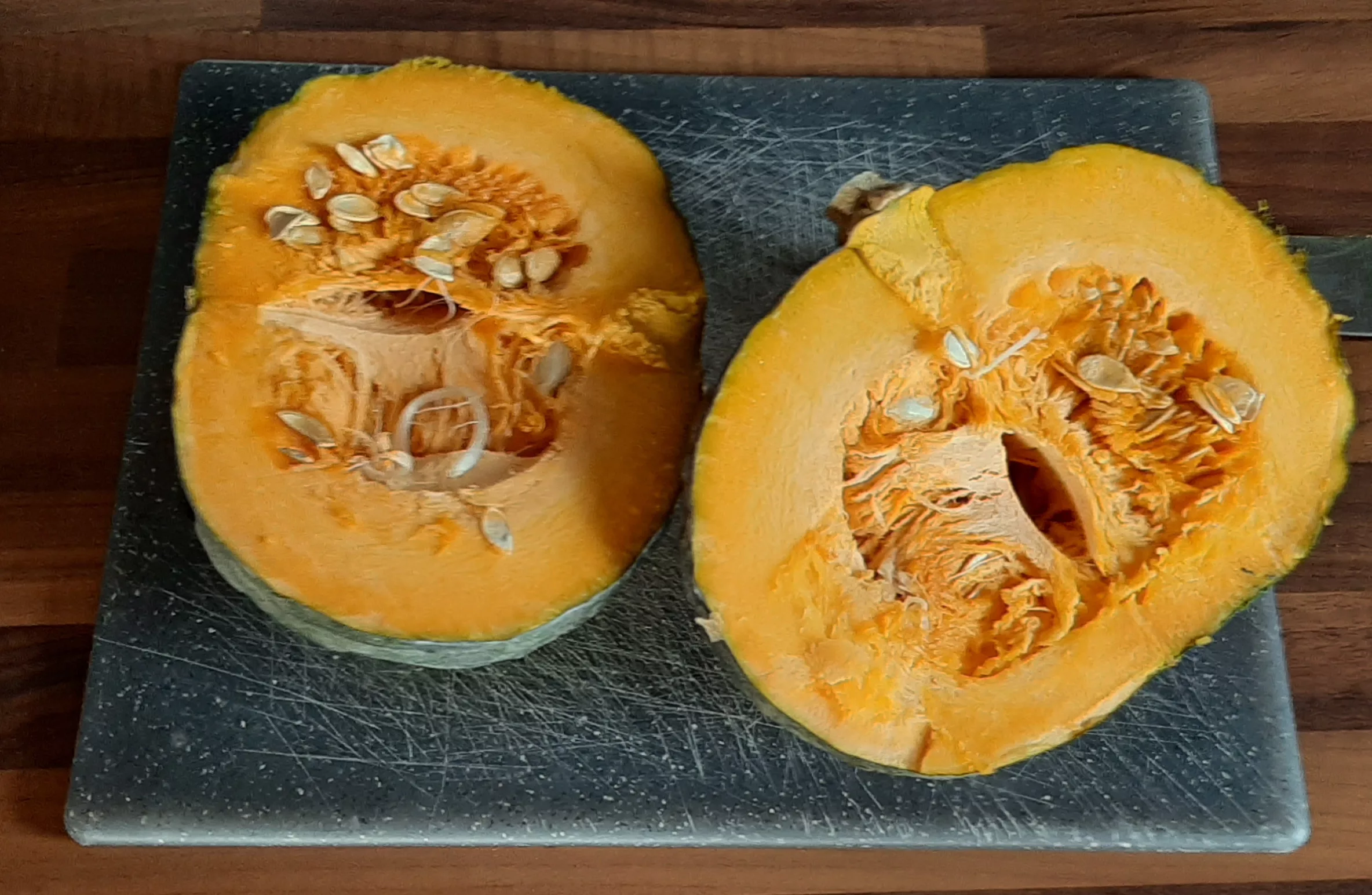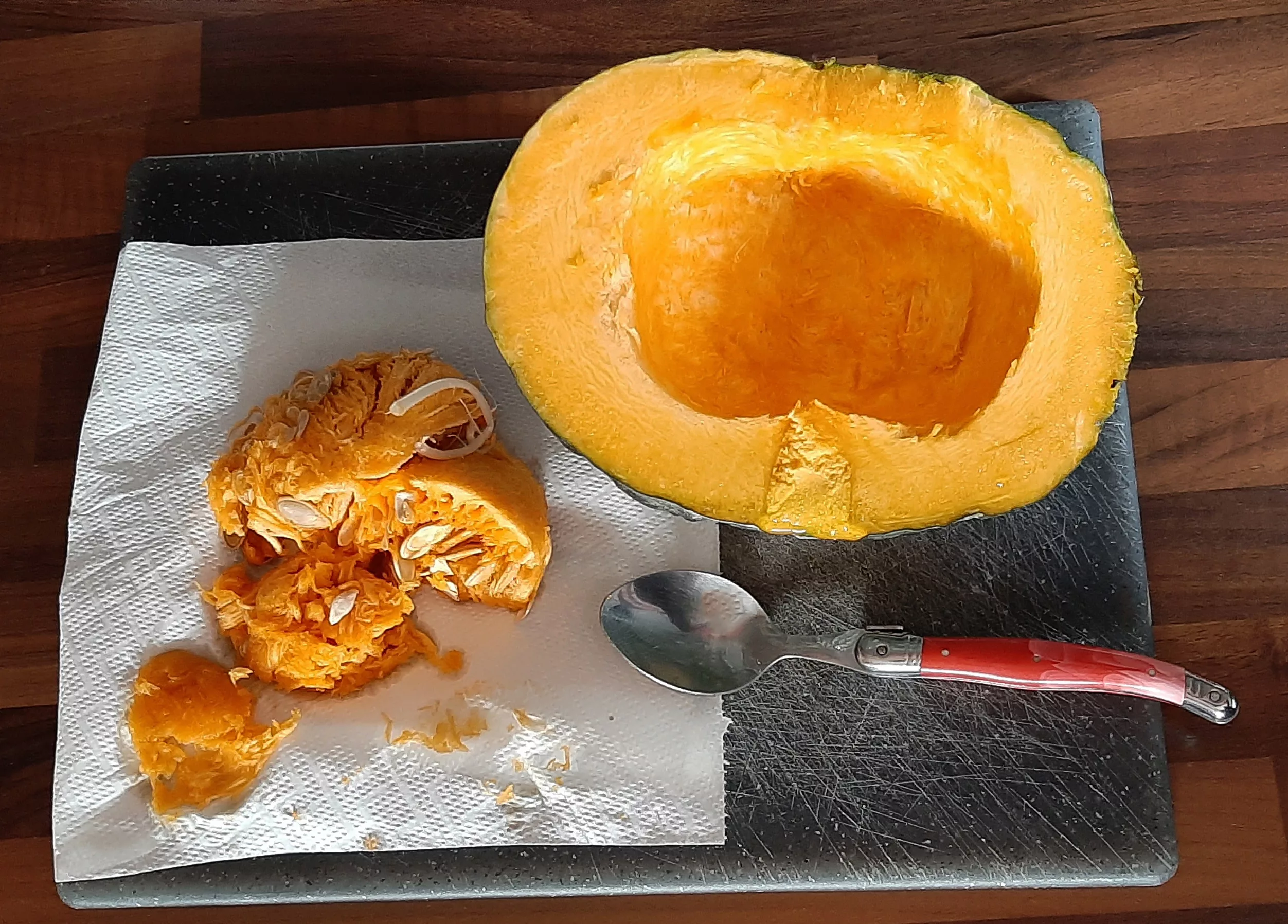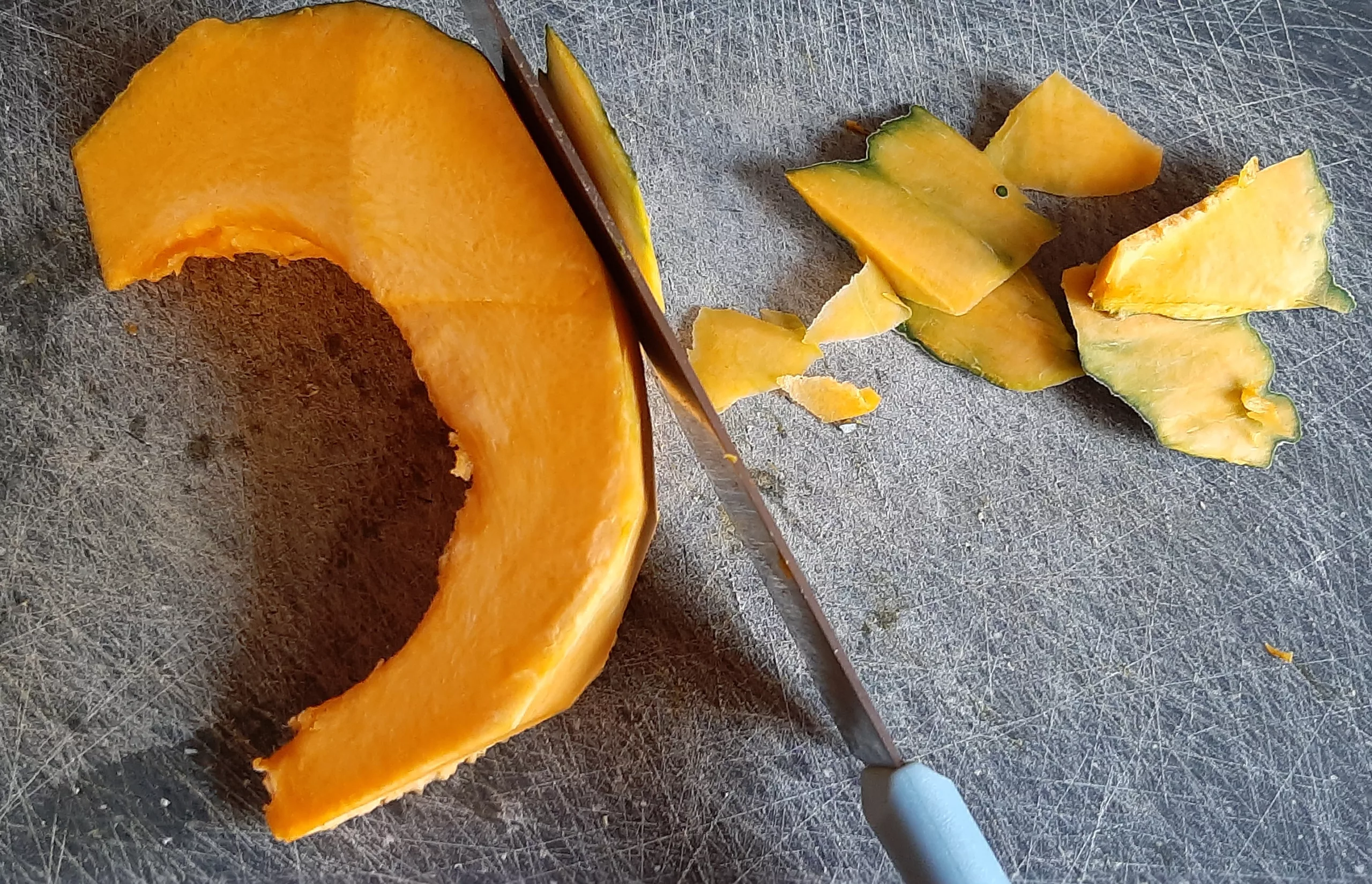 Commencer par préparer la courge potimarron vert.