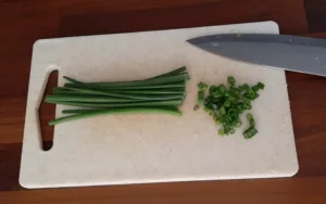 Ensuite, éplucher l'oignon rouge et l'émincer finement.