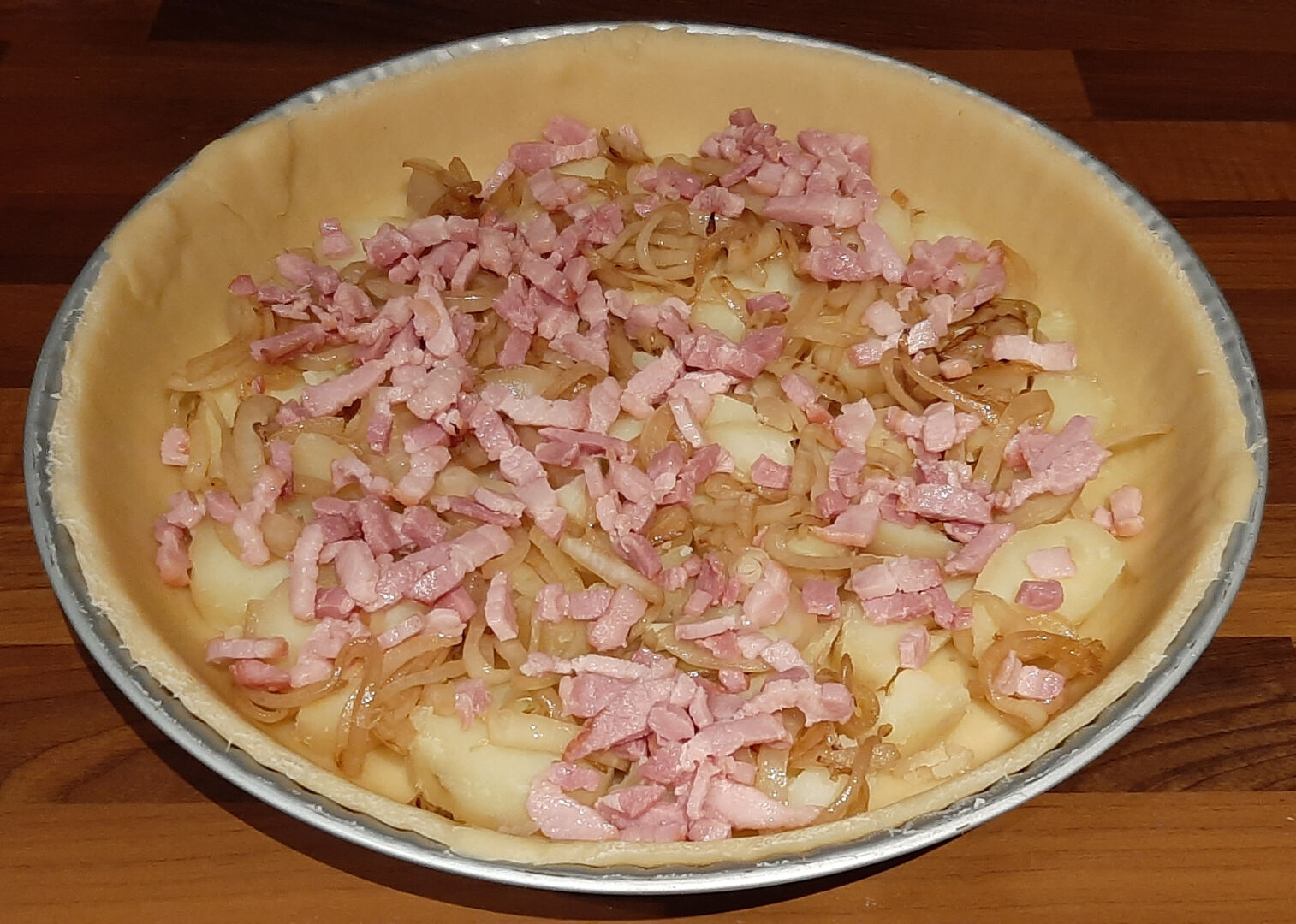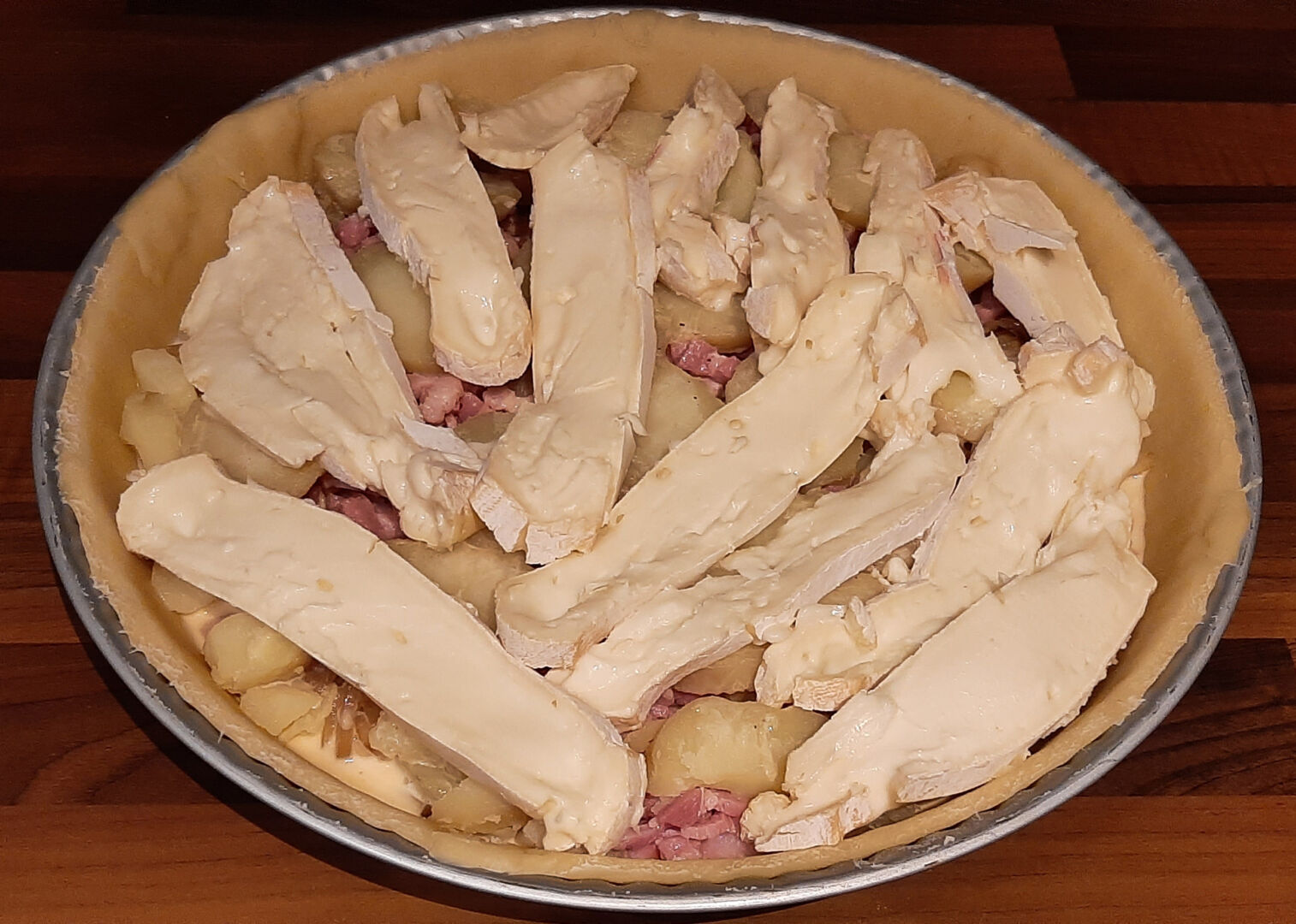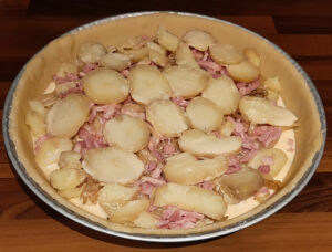 • Mettre ensuite sur la tarte la moitié des pommes de terre