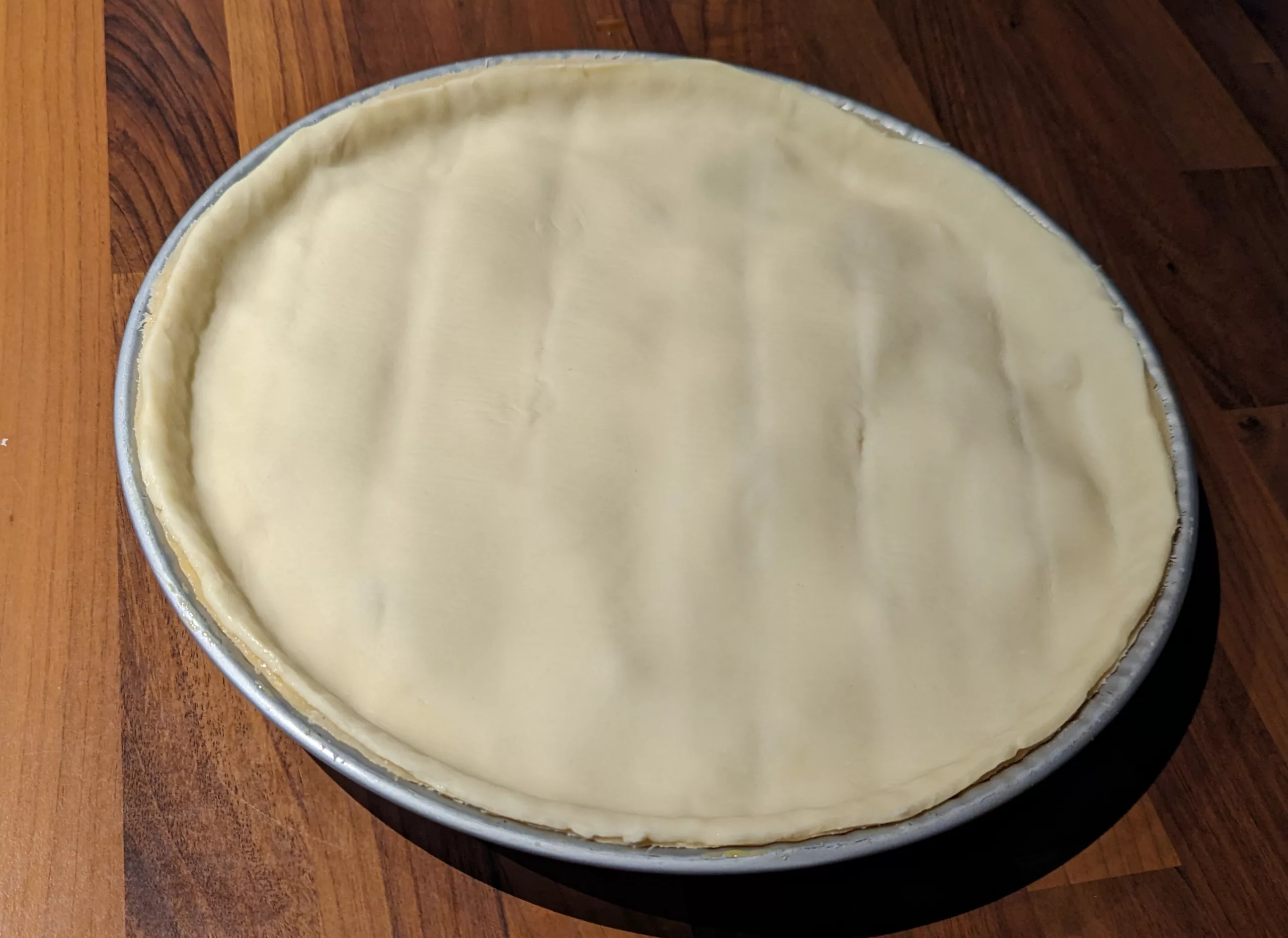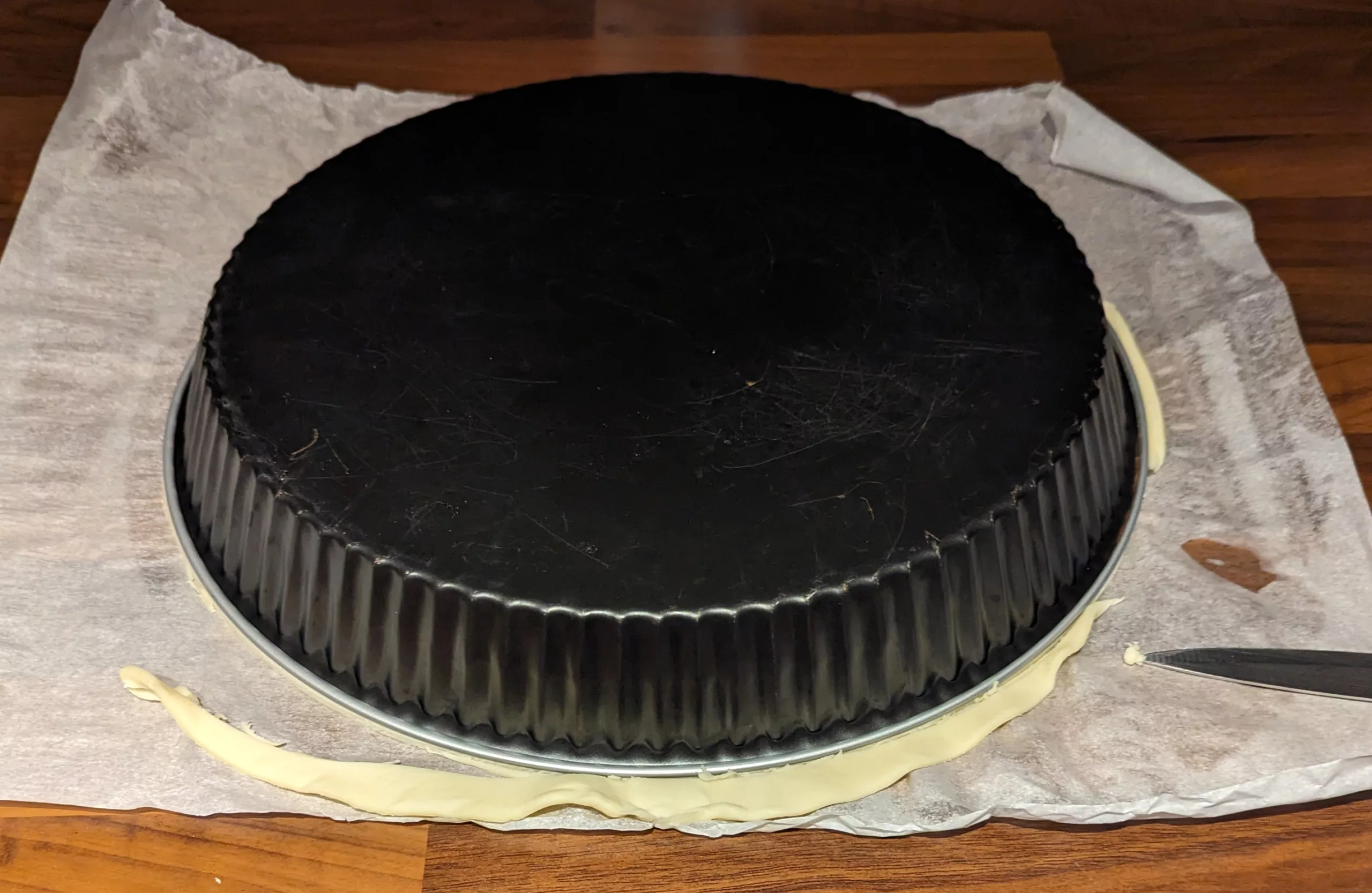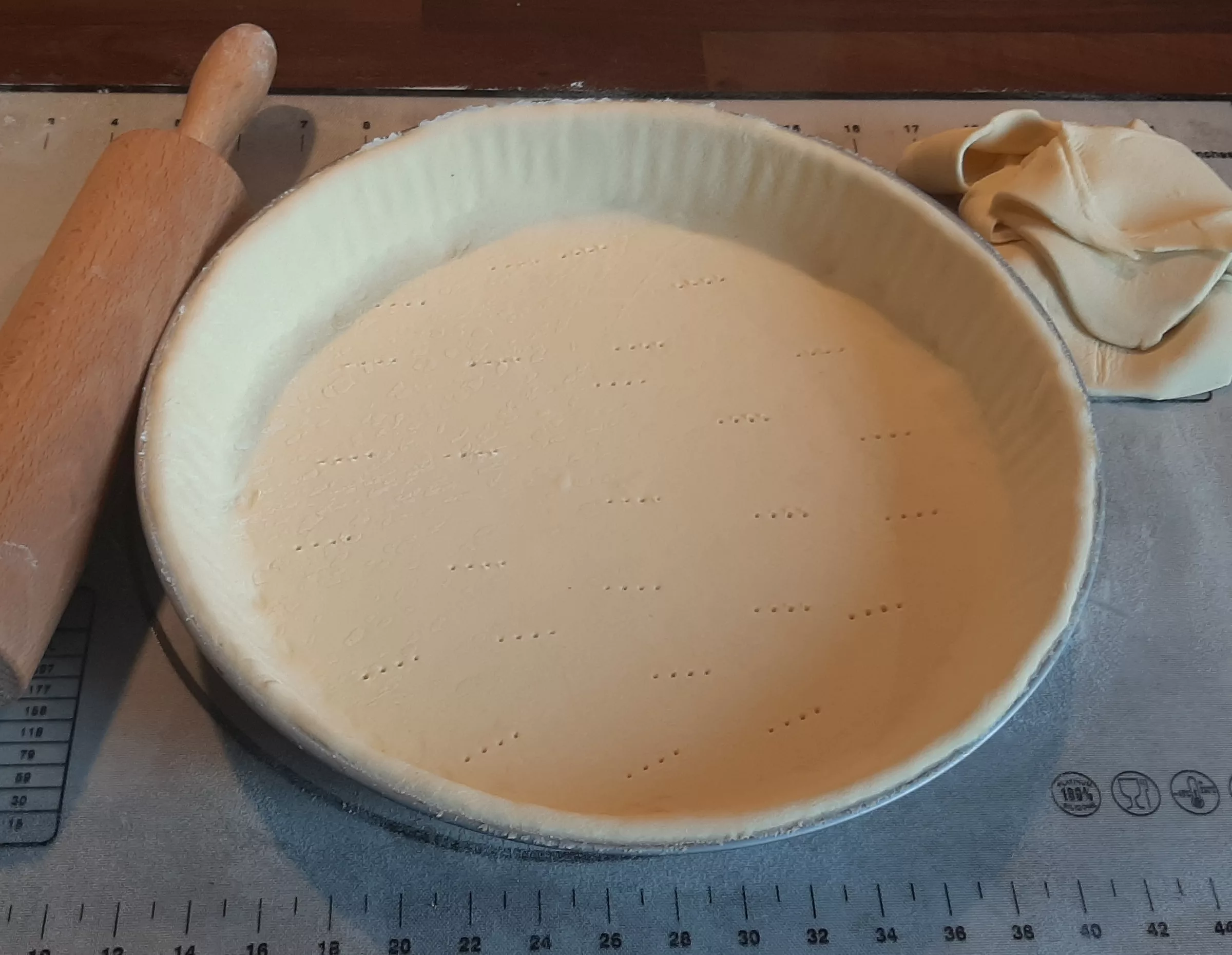 Foncer la deuxième pâte feuilletée dans le moule et mettre le tout 30 minutes au réfrigérateur.