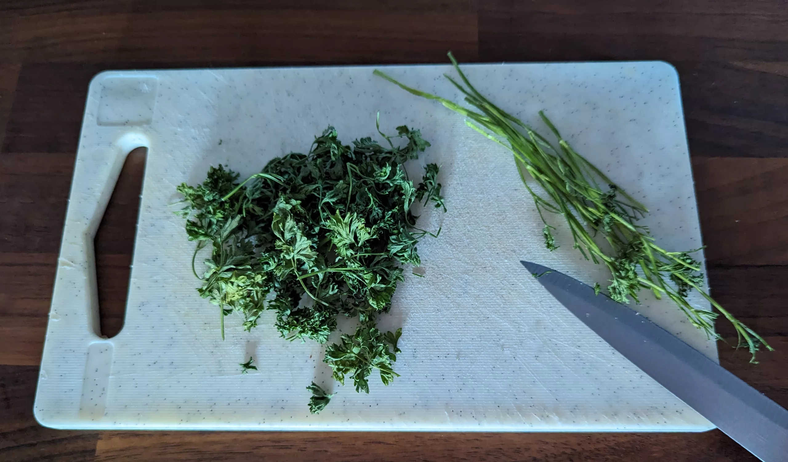 Ensuite, enlever les tiges du persil et ciseler les feuilles finement.