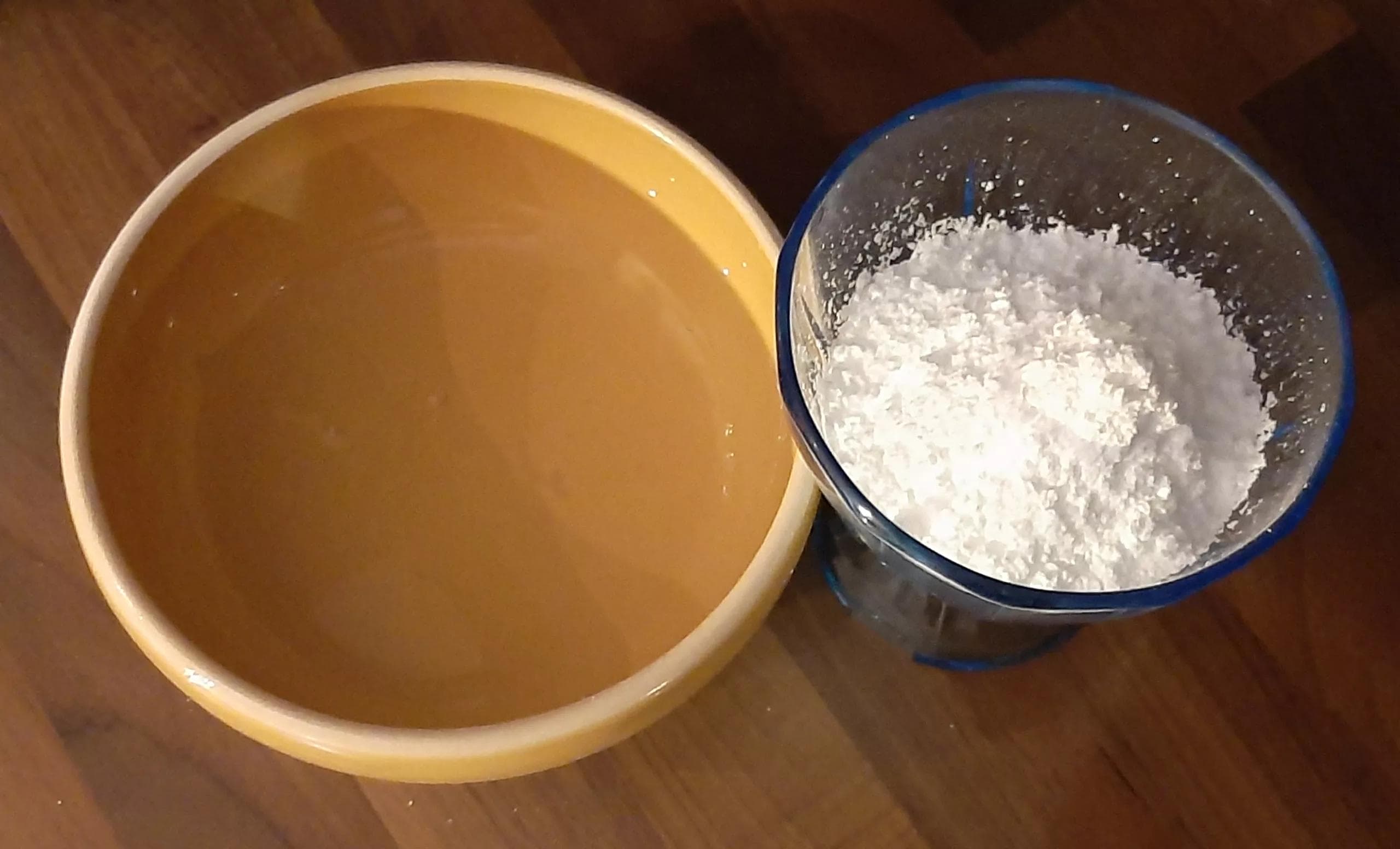 - Prendre les 150 grammes de sucre glace restant et le blanc d'œuf.