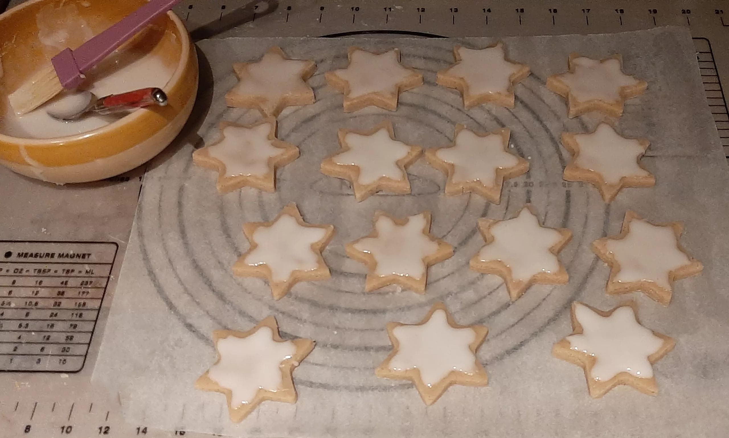 - Les sortir pour finir et les laisser refroidir. Vos biscuits de Noël Zimtsterne sont prêts. Bonne dégustation !